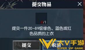 5、小伙伴需要提交绿、蓝或者红色品质20-89级的上衣然后完成奇遇。